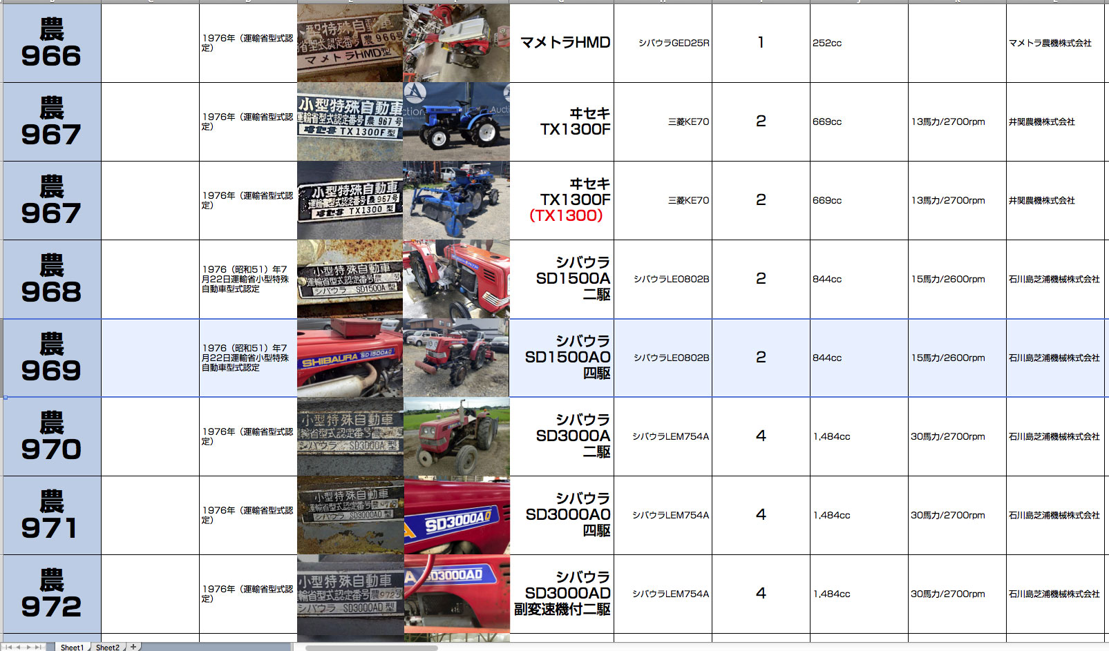 『農機の運輸省型式認定番号一覧表』を固定ページで公開しました。一番上のメニューから入れるようにしています。これから新しく運輸省型式認定番号を発見するたびに追記することにします。