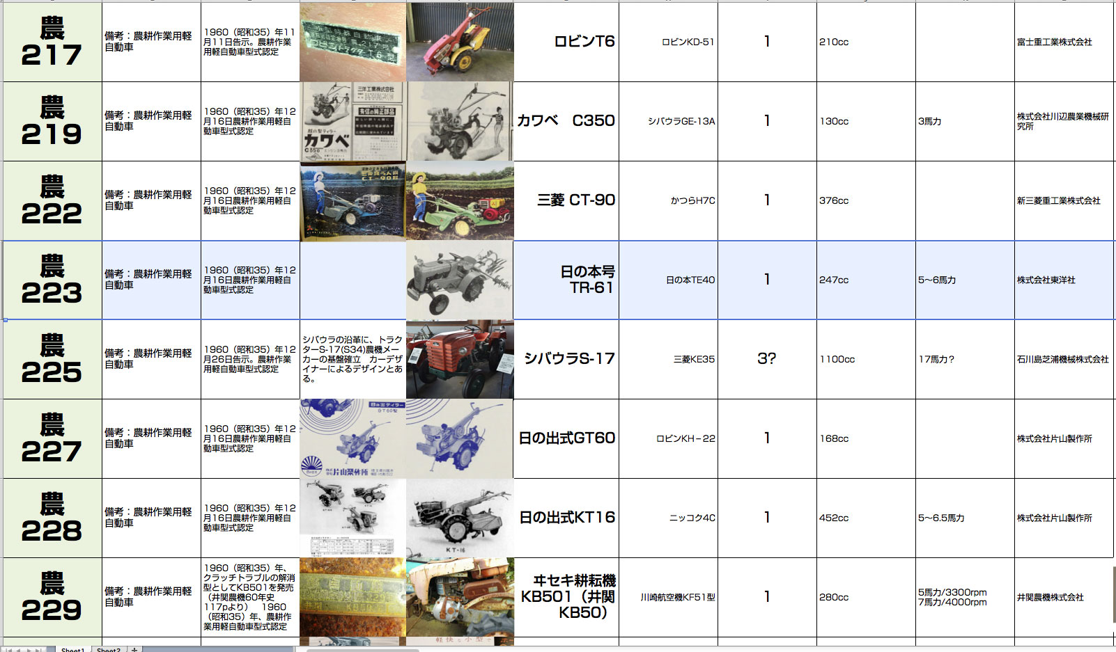 『農機の運輸省型式認定番号一覧表』を固定ページで公開しました。一番上のメニューから入れるようにしています。これから新しく運輸省型式認定番号を発見するたびに追記することにします。