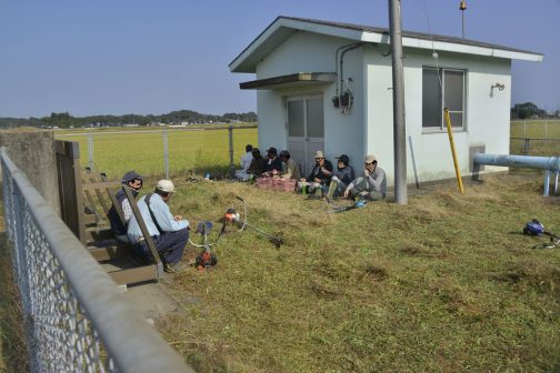 投稿日: 2023年11月6日2023年11月6日 投稿者: nora【昨日は活動日】今年は本当に草が伸びました。11月に入っても草刈り。 今年は本当によく草が伸びました。11月に入っても草刈りです。この時期の草はコシがなく、すぐにもたれかかってくるので力は必要だし疲れます。朝の集合です。なんだか夕方みたいに影が長いです。もうそんな季節になったんだなぁ。長老集団はここが定位置。早くもマシントラブル。スターターの紐が戻りません。しょっぱなから夕方みたいです。随分草丈も高く、今日は少し苦労しそう・・・地区の境界、水路脇の草も随分と伸びています。ここで再びマシントラブル。道路に沿って北西に向かいます。途中も水路脇の草刈り。歩道の草刈りもします。今年はこの辺りにWCSが置いてあったタイミングで公共の草刈りがあったので、草が伸びているのかもしれません。(WCSのタマがあって刈ってもらえなかったのかも)ほぼ枯れ草。こういうの、刈りにくいです。道端には季節外れのタンポポ。春になったと間違えたかな?水路には寂しくホテイアオイも浮かんでいます。これから寒くなるけどどうする?景観形成のために植えた彼岸花の管理。大きな排水路に沿って草刈りを進めて・・・揚水機場にたどり着きます。農地畦畔の草刈り。ここの草は手強かった・・・ここまでくると一休み。日向は気持ち暑いかな・・・という程度。ちょうど良い気温です。ついにこんな季節になったんですね。暑いばかりじゃなかったんだ。あとは刈りながら戻ります。参加された皆さん、お疲れ様でした。またよろしくお願いします!今朝はここまでです。それではまたあした!上の記事とゆるく関連しているほかの記事:週末の活動に向けてスライドモアの草刈りが始まりましたおとといの活動はこんな感じ→今日は思い切り寝坊したので1時間以上遅れ今年度は快調です!週末の活動に向けスライドモアの草刈り始まりました残置物を撤去しました『重機で木障払い(こさばらい)』重機で木障払い(こさばらい)昨日は2週連続の活動日でした(草刈りとゴミ拾い)