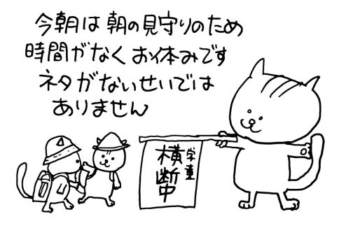 投稿日: 2025年2月19日2025年2月19日 投稿者: nora朝の見守りのためネタをすっ飛ばします。悪しからず小学生の朝は早いです。その見守りのため今日は書くことがありながら、書くことがあるのにこんな絵でおしまいです。決して決してラクをするためではありません。小学校近くの交差点はダンプの行き来が激しく、他の通勤車も割と殺気だっています。おまけに小学生も前のめりで白線の直前で青を待っていたりするので危険です。今日も1日ご安全に!!上の記事とゆるく関連しているほかの記事:首尾@高校生と大学生が小学生と「共遊」するイベント「○であそぼ!」【その2】『第27回おおばふれあいまつり』@大場市民センターあははっ!また寝坊放課後の学校クラブ2大!天才てれびくんがやってきたポイ捨ては悪人の仕業ではなく、善人もしくはごく普通の人の行為なのじゃないか?・・・と思う