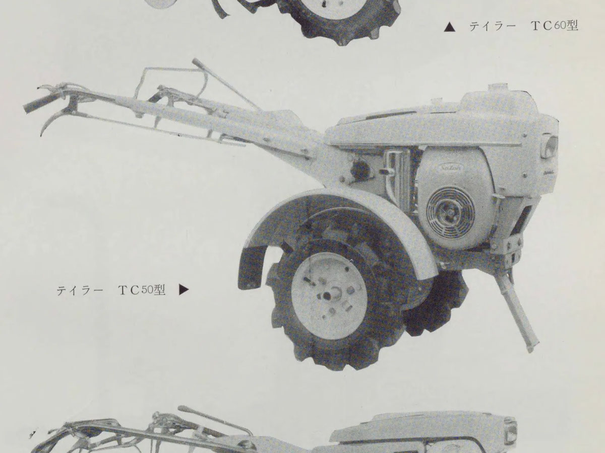 もう実機は見られないであろう運輸省型式の若い番号の古い農機を本や雑誌から探している「朝1分の農機考古学」。今朝は佐藤造機の社史「50年のあゆみ」から1962年型式認定サトー式TC50です。実は農300番台近辺は資料がすっぽり抜け落ちていて、写真が見つかっても番号の確定がとても難しいのでした。