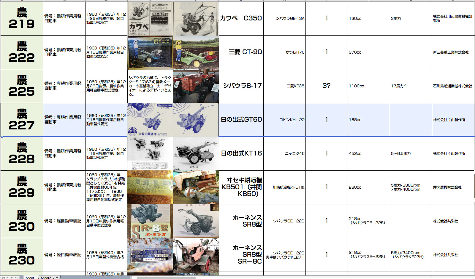 『農機の運輸省型式認定番号一覧表』を固定ページで公開しました。一番上のメニューから入れるようにしています。これから新しく運輸省型式認定番号を発見するたびに追記することにします。