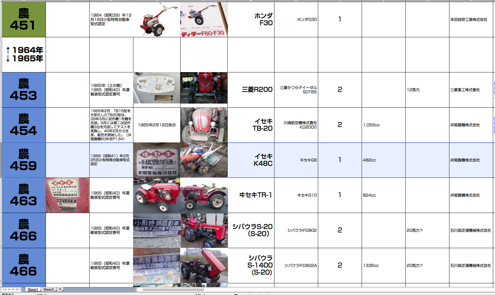 毎日オークションの写真でサクッと「朝1分の農機考古学」『スキマを埋めて日本農機の流れを把握!「運輸省型式認定番号」』シリーズ。今朝は1965年と1966年で2回認定されているイセキの耕耘機48Cです。お役所が間違え何かと重複しているのか、イセキで実際にそうしたのか、朝の1分では調べきれないので宿題にします。