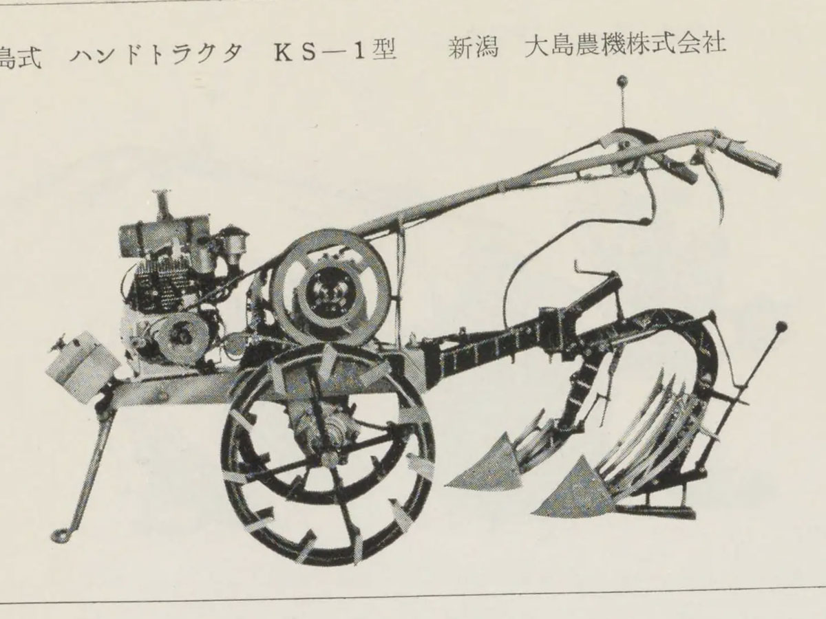 もう実機は見られないであろう運輸省型式の若い番号の古い農機を本や雑誌から探している「朝1分の農機考古学」。今朝は1958年の農用小型トラクタ検査成績書-昭和32年度から、1958年型式認定の大島式ハンドトラクタKS-1です。ハイフンが省略されることの多い運輸省型式名ですがこちらはKS1ではなくKS-1なのでした。