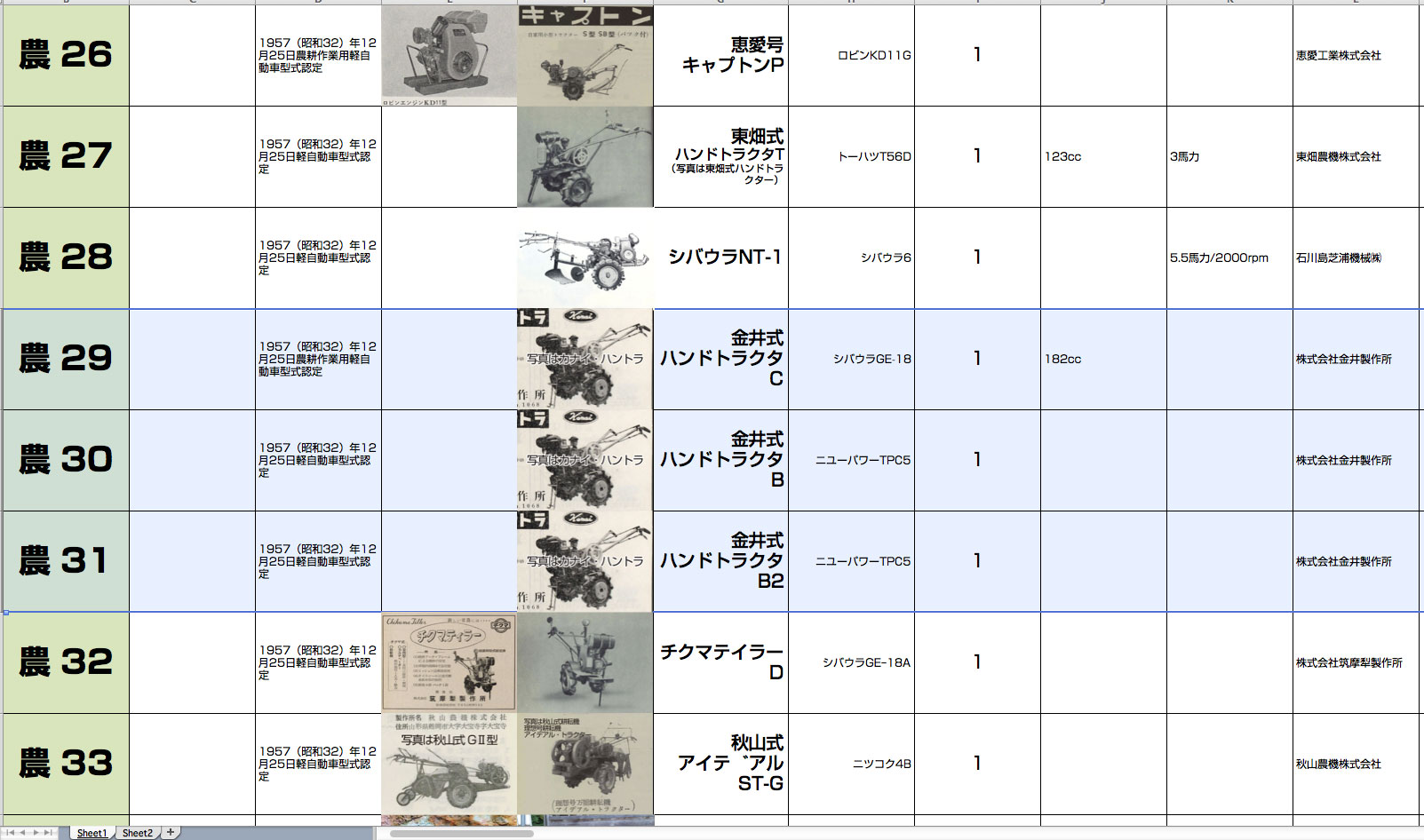 『農機の運輸省型式認定番号一覧表』を固定ページで公開しました。一番上のメニューから入れるようにしています。これから新しく運輸省型式認定番号を発見するたびに追記することにします。