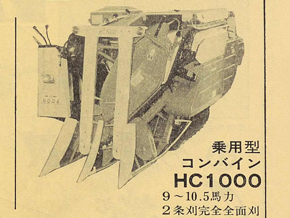もう実機は見られないであろう運輸省型式の若い番号の古い農機を本や雑誌から探している「朝1分の農機考古学」。今朝は1977年農機実業総覧の広告より1977年型式認定のノダコンバインHC1000です。これにも本当に苦労させられて、こんなつまらないものでも見つけるのに1週間くらいかかりました。