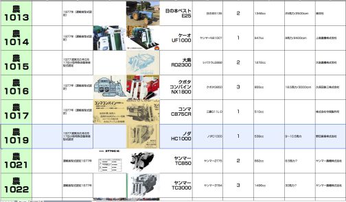 『農機の運輸省型式認定番号一覧表』に追記しました