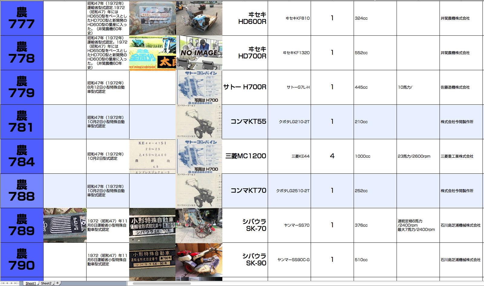『農機の運輸省型式認定番号一覧表』を固定ページで公開しました。一番上のメニューから入れるようにしています。これから新しく運輸省型式認定番号を発見するたびに追記することにします。