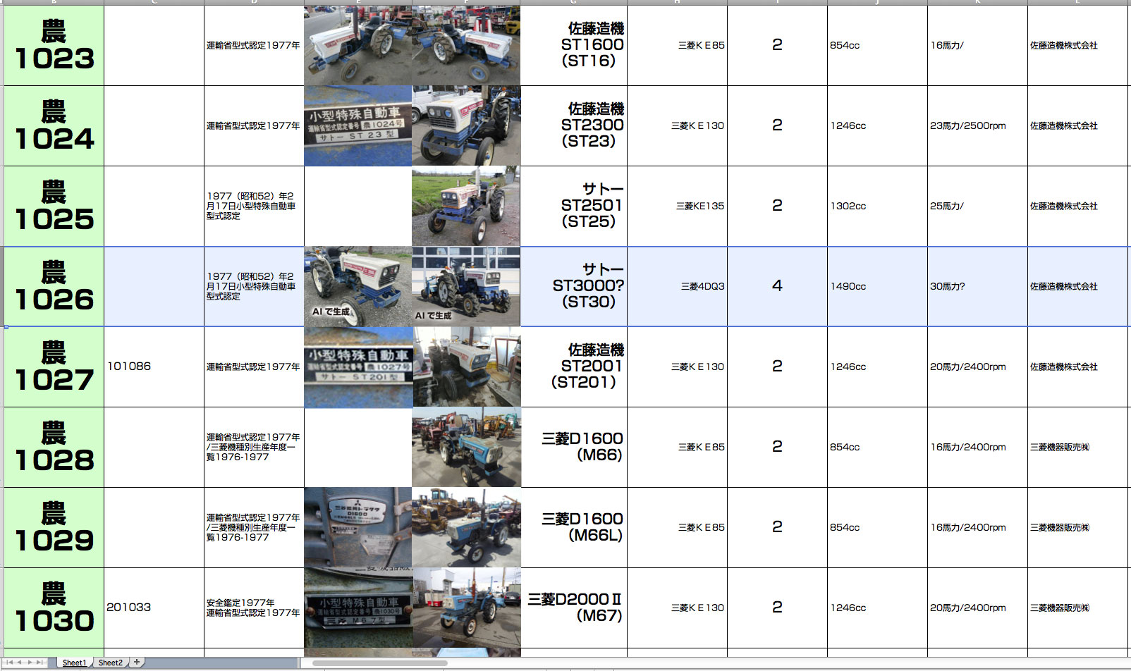 『農機の運輸省型式認定番号一覧表』を固定ページで公開しました。一番上のメニューから入れるようにしています。これから新しく運輸省型式認定番号を発見するたびに追記することにします。