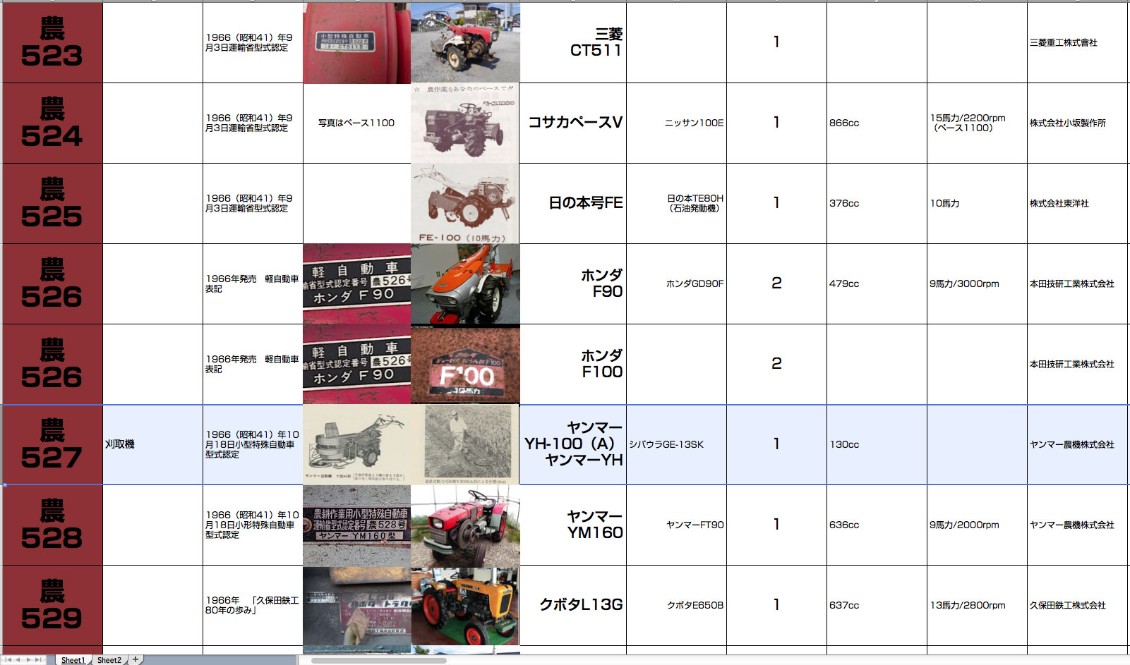 『農機の運輸省型式認定番号一覧表』を固定ページで公開しました。一番上のメニューから入れるようにしています。これから新しく運輸省型式認定番号を発見するたびに追記することにします。