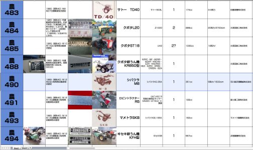 『農機の運輸省型式認定番号一覧表』に追記しました