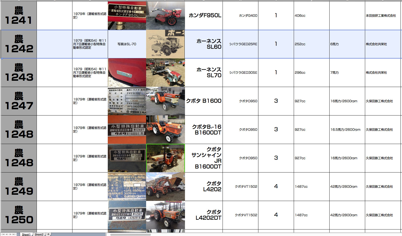 『農機の運輸省型式認定番号一覧表』に追記しました