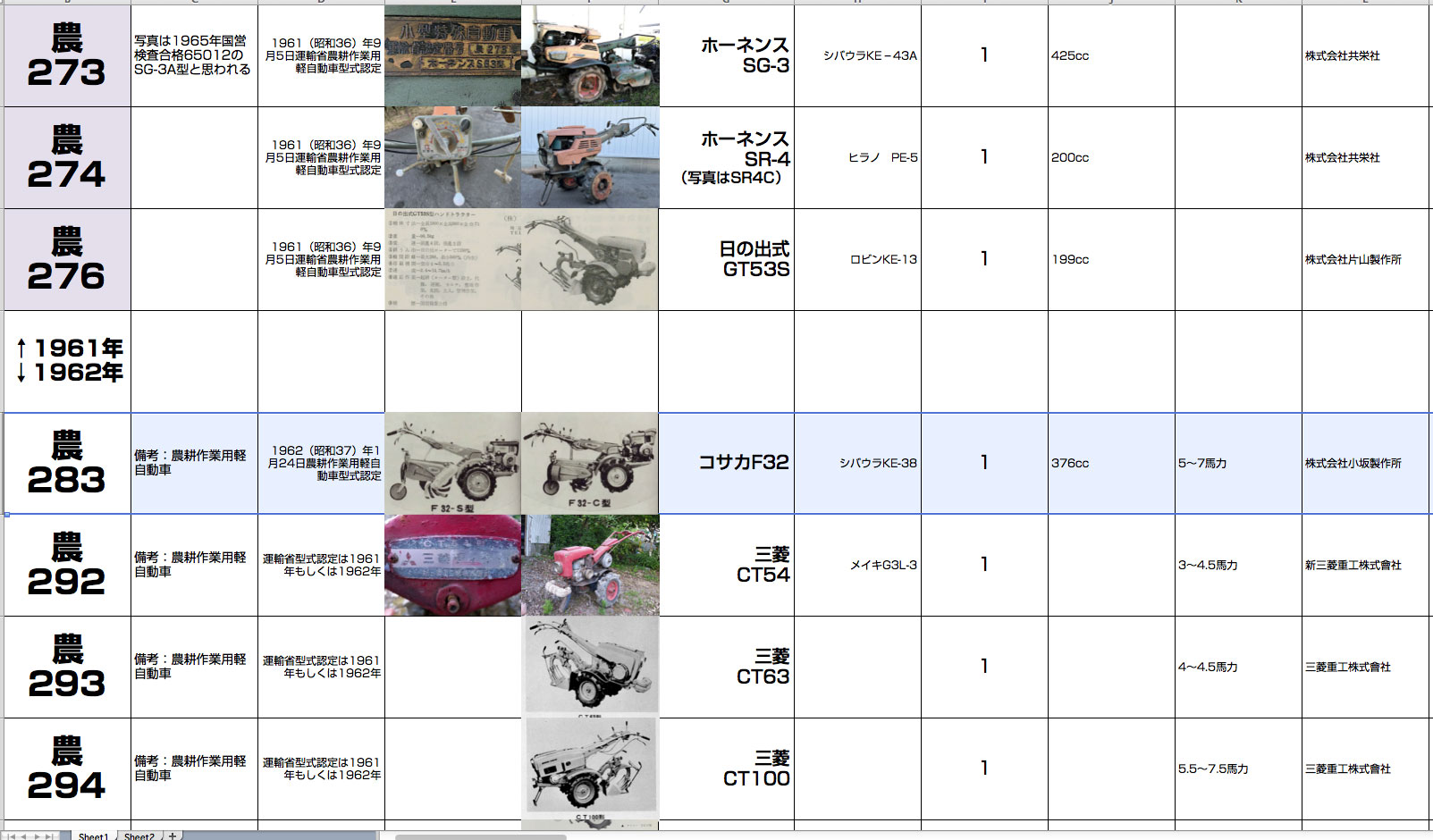 『農機の運輸省型式認定番号一覧表』を固定ページで公開しました。一番上のメニューから入れるようにしています。これから新しく運輸省型式認定番号を発見するたびに追記することにします。
