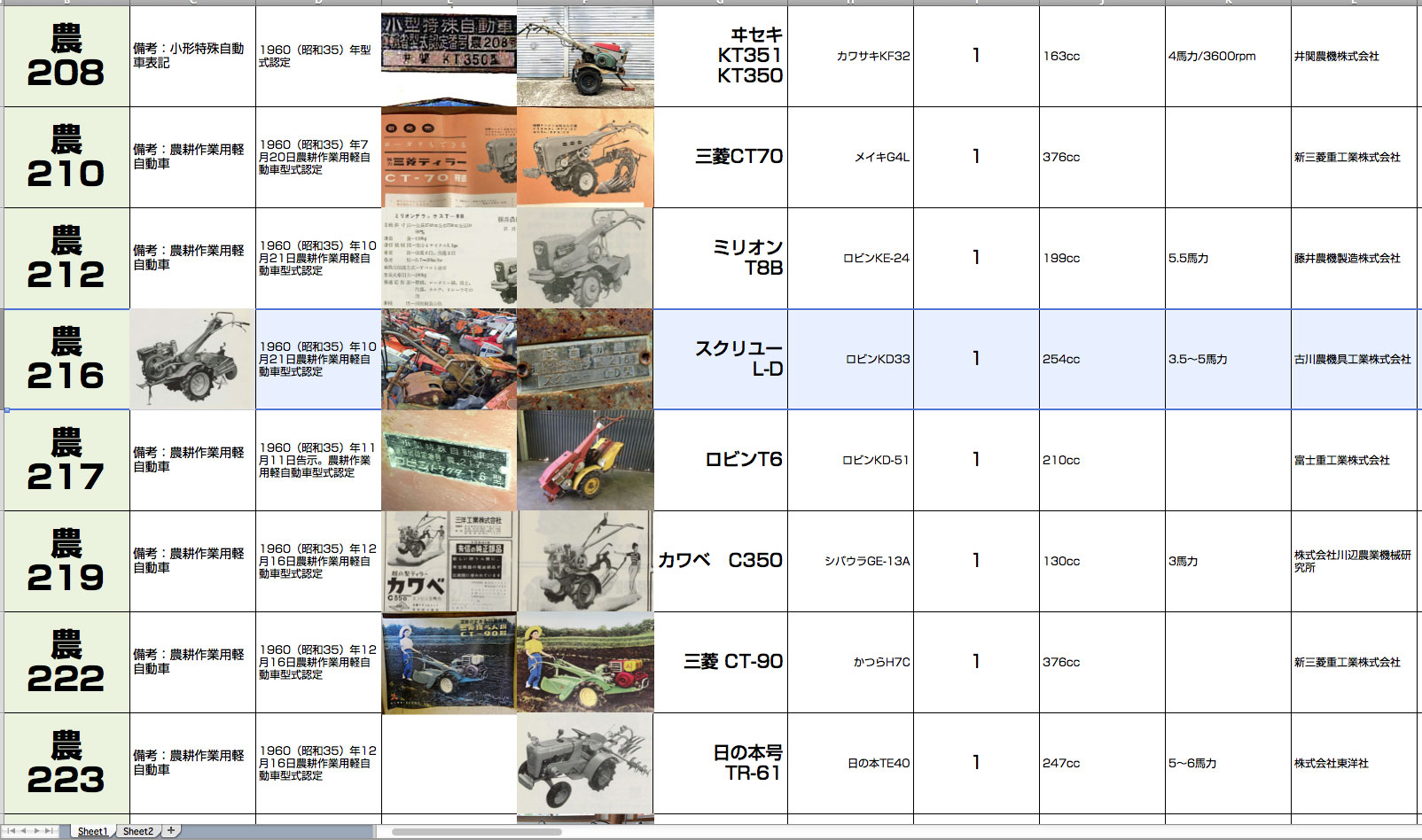 『農機の運輸省型式認定番号一覧表』を固定ページで公開しました。一番上のメニューから入れるようにしています。これから新しく運輸省型式認定番号を発見するたびに追記することにします。