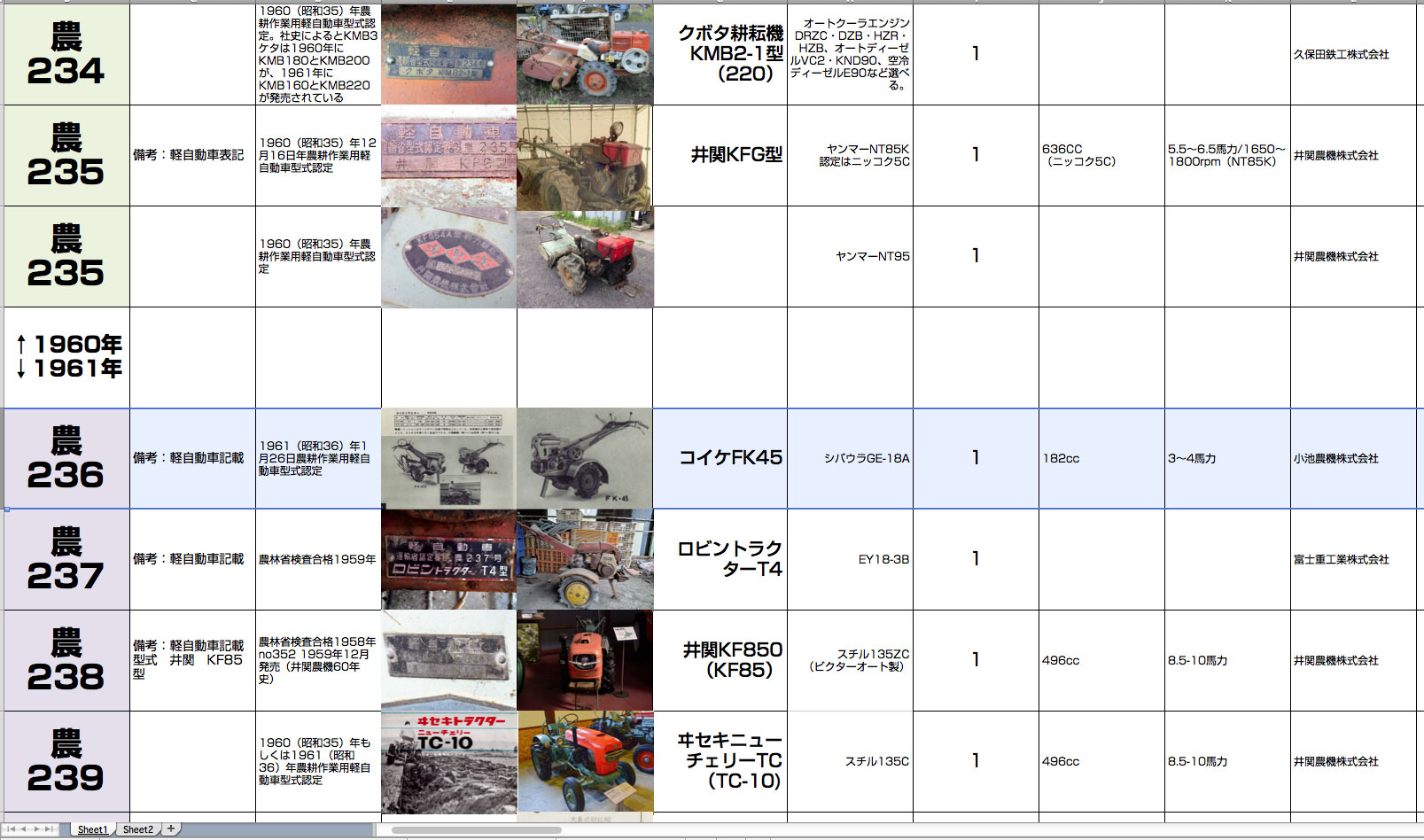『農機の運輸省型式認定番号一覧表』を固定ページで公開しました。一番上のメニューから入れるようにしています。これから新しく運輸省型式認定番号を発見するたびに追記することにします。