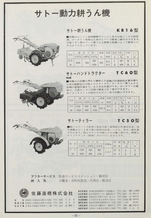 となっています。佐藤造機の耕運機の中でKB型というのは特殊な名前で確かこれ以外にはつけられていなかったはずです。