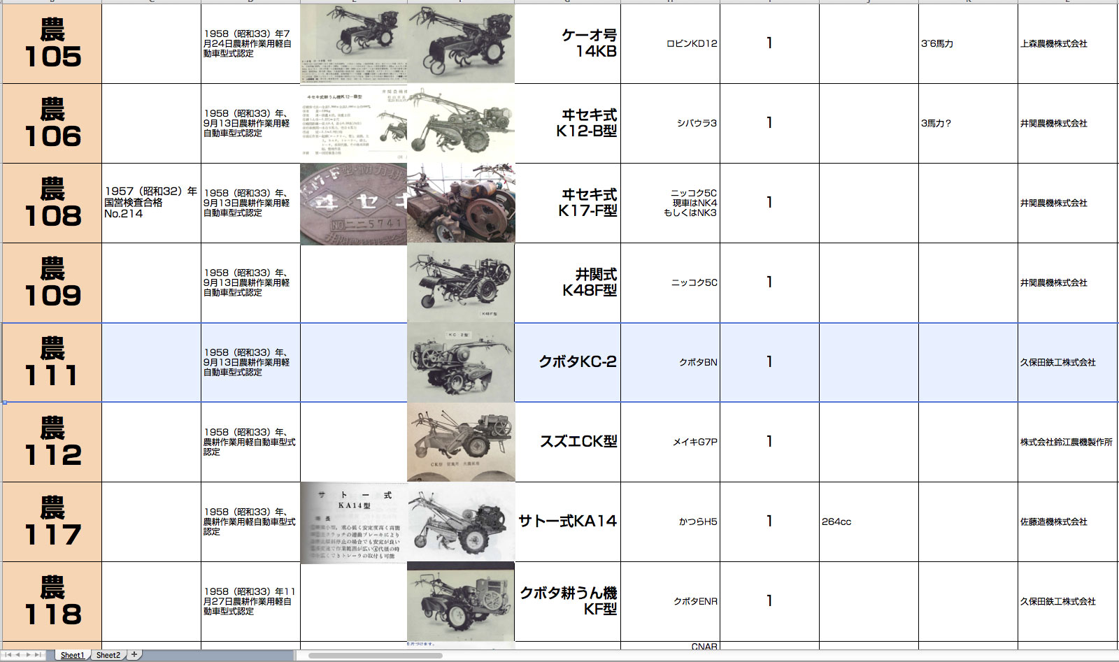 となっていて1958年型式認定でした。クボタBN型で認定は受けていますが当時エンジンはそれとは関係なく(宣材写真すら)載せられていたみたいなので写真のエンジンBN型なのかどうかはわかりません。