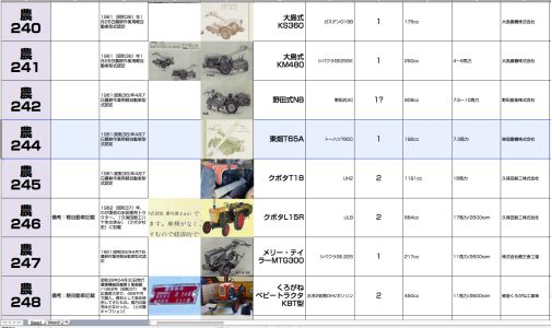 『農機の運輸省型式認定番号一覧表』を固定ページで公開しました。一番上のメニューから入れるようにしています。これから新しく運輸省型式認定番号を発見するたびに追記することにします。