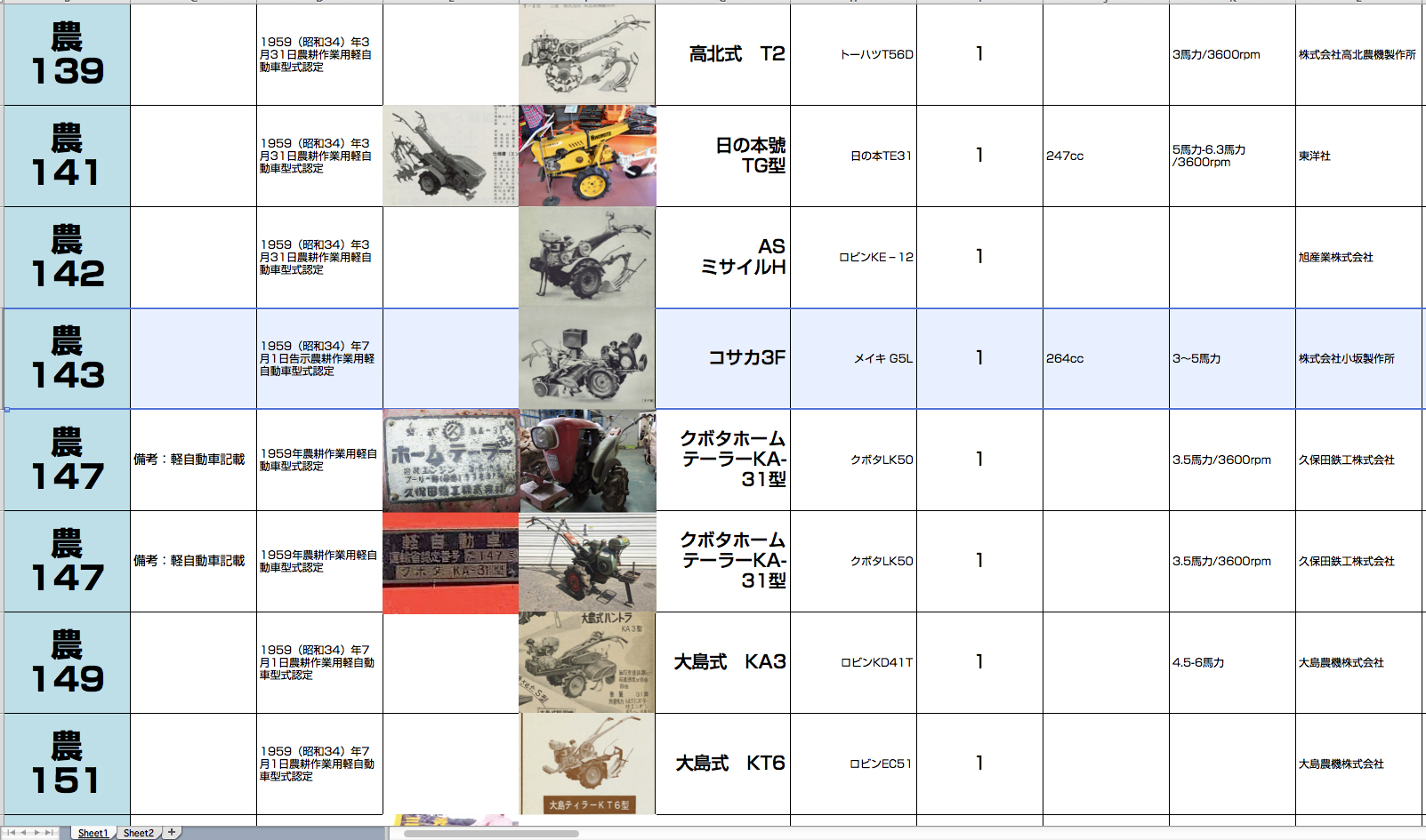 『農機の運輸省型式認定番号一覧表』を固定ページで公開しました。一番上のメニューから入れるようにしています。これから新しく運輸省型式認定番号を発見するたびに追記することにします。