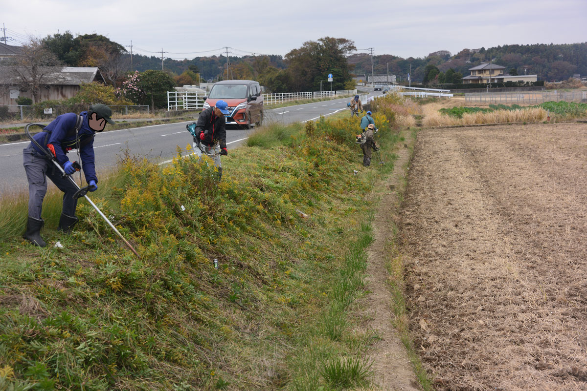 投稿日: 2025年11月25日2025年11月25日日曜日は多分今年度最後の草刈りでした 先日の日曜日は多分(というか絶対)保全会今年度最後の草刈りでした。↓ドローンの練習もしました。稲刈りの時にあったらなぁいつものように集合写真から。今にも雨の降りそうな天気です。活動開始まで時間があったので集落センターのお掃除です。この時期イチョウの葉っぱが落ちて積っていますから。今回は水路と県道の間の法面を刈っています。農家からは水路の向こう側ですし道路からは水路までかなり下で距離があります。写真で見る奥に行くにつれて法面が長くなり、水路も幅が出てきます。ここを誰も刈らないと草がすごく伸びてジャングルになり、そこへゴミが捨てられる(捨てた途端に深い草むらに消えてなくなったように感じるからでしょうか)という悪循環でした。そして草が伸び過ぎてしまうと背が高過ぎて投げ入れられないので、道路脇にゴミを置いて済まされてしまうという状態でした。去年からやってみてここは草を刈ると気持ちゴミが減るような気もしますが、今度はなぜか道路を挟んで反対の歩道側にゴミが捨てられるという狂気です。日本はどうなってしまうのでしょうか・・・いつもとは違ったところで活動したので休憩もいつもと違うところで・・・寒いけど動いて暑い。そんな日でした。今日はこんなところです。それではまた明日!